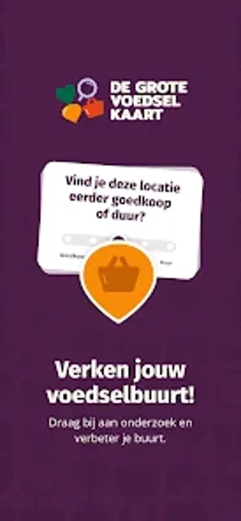 แอปนี้ใช้งานฟรีสำหรับบุคคลที่มีอายุ 16 ปีขึ้นไป โดยผู้ใช้จะต้องสร้างโปรไฟล์ด้วยข้อมูลประชากรพื้นฐาน โดยการเข้าร่วม ผู้ใช้ไม่เพียงแต่เรียนรู้เกี่ยวกับนิสัยการกินของตนเอง แต่ยังเรียนรู้ว่าสภาพแวดล้อมด้านอาหารในละแวกของตนเปรียบเทียบกับที่อื่นอย่างไร ด้วยฟีเจอร์ที่อนุญาตให้ติดตามสถิติส่วนบุคคลและการมีส่วนร่วมของชุมชน De Grote Voedselkaart เป็นเครื่องมือที่สำคัญสำหรับผู้ที่ต้องการสร้างผลกระทบที่มีความหมายในชุมชนของตน
